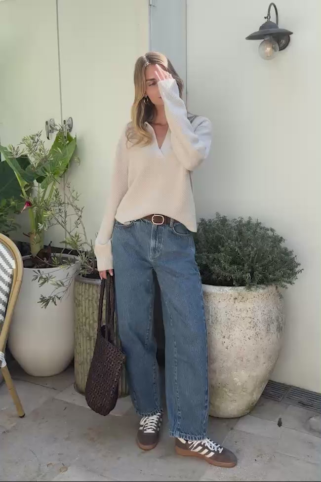 Discover the Kira Collared Knit, your new go-to piece for effortless style and comfort. Crafted from post-consumer recycled yarn, this knit combines sustainability with softness. The relaxed fit and v-neck collar create a polished look whether you're lounging at home or layering for the day ahead. Wonderfully cosy and easy to care for, it's the perfect addition to any wardrobe. Composition: 49% Polyester, 25% Acrylic, 20% Polyamide, 6% Wool. Best stored folded.